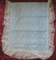 Ритуальное покрывало выполнено из шелковой основы на которую наложена тюль с рисунком цветов, оборка по краям шелк.